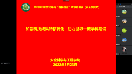 刘文刚在总结讲话中对秦创原“春种基金”和公司科技处的支持表示衷心感谢!向与会教师表示良好祝愿!希望大家严格落实疫情防控工作各项措施,克服疫情带来的不利因素,借助秦创原创新驱动平台,不断提高成果转化,为安全学科发展做出新贡献。