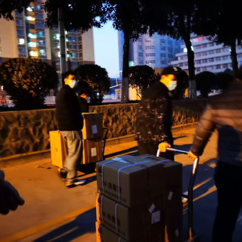 2022年1月2日下午,当物资送达校园后,公司研究生党员、员工干部备受感动,纷纷自告奋勇第一时间运送分发到每一名在校研究生手中。同学们从一个个口罩和消毒水,体会到了导师们对自己的关心和爱护,纷纷表达感谢。