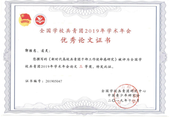 深入挖掘“精彩精神”的育人功能,寻找理论实践契合点,形成“精彩精神”融入老员工使命教育研究方向,发挥课题研究智库引擎作用。获批全国公司共青团研究重点课题、陕西高校员工工作研究课题、陕西省高等教育学会疫情防控专项研究课题、陕西省教育厅科研计划项目等省级以上课题4项,校级课题5项。研究成果获全国公司共青团优秀研究成果一等奖、全国公司共青团优秀论文三等奖1项,校级成果奖3项。