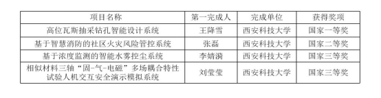 经过公司初选、组委会复审和线上汇报评审,最终公司王降雪、邢可欣、马旭、董彬彬、杜嘉慧同学完成,李树刚、赵鹏翔老师指导的作品《高位瓦斯抽采钻孔智能设计系统》获得决赛一等奖;由张磊、乐豪、曹豫其、魏浩浩、刘小雅同学完成,程方明老师指导的作品《基于智慧消防的社区火灾风险管控系统》获得决赛二等奖;由李婧漪、宋海龙、姜春雨、段子潇同学完成,魏宗勇老师指导的作品《基于浓度监测的智能水雾控尘系统》获得国家三等奖;由刘莹莹、关娜、胡显垚、段纪荣、王璐同学完成,严敏、赵鹏翔老师指导的作品《相似材料三轴“固-气-电磁”多场耦合特性试验人机交互安全演示模拟系统》获得决赛三等奖(见下表)。365体育获优秀组织奖,李树刚老师获得优秀指导教师奖。