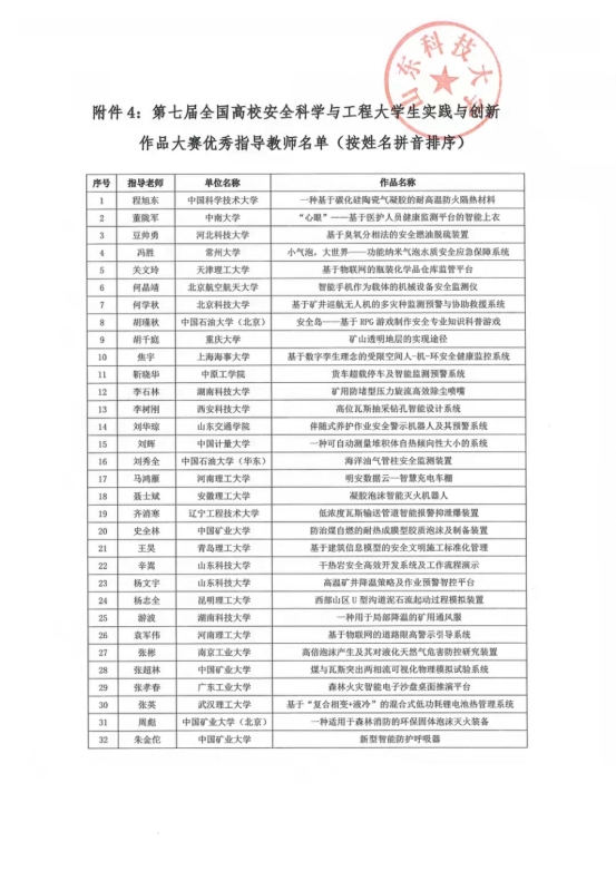 全国高校安全科学与工程老员工实践与创新作品大赛是安全科学与工程相关专业的全国性赛事,旨在引导、支持、激励老员工开展科技创新活动,培养员工的创新精神、探索意识和实践能力。大赛为我国安全科学与工程类专业老员工的工程实践能力、创新能力及团队合作精神的培养和锻炼搭建了很好的平台,也为高校教师、同行进行员工实践能力、创新能力培养经验交流提供了难得的机会。