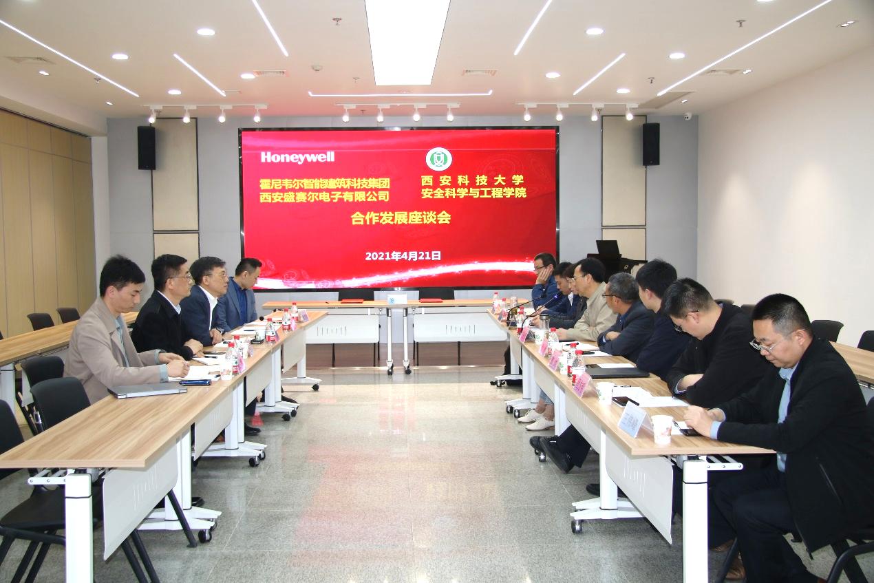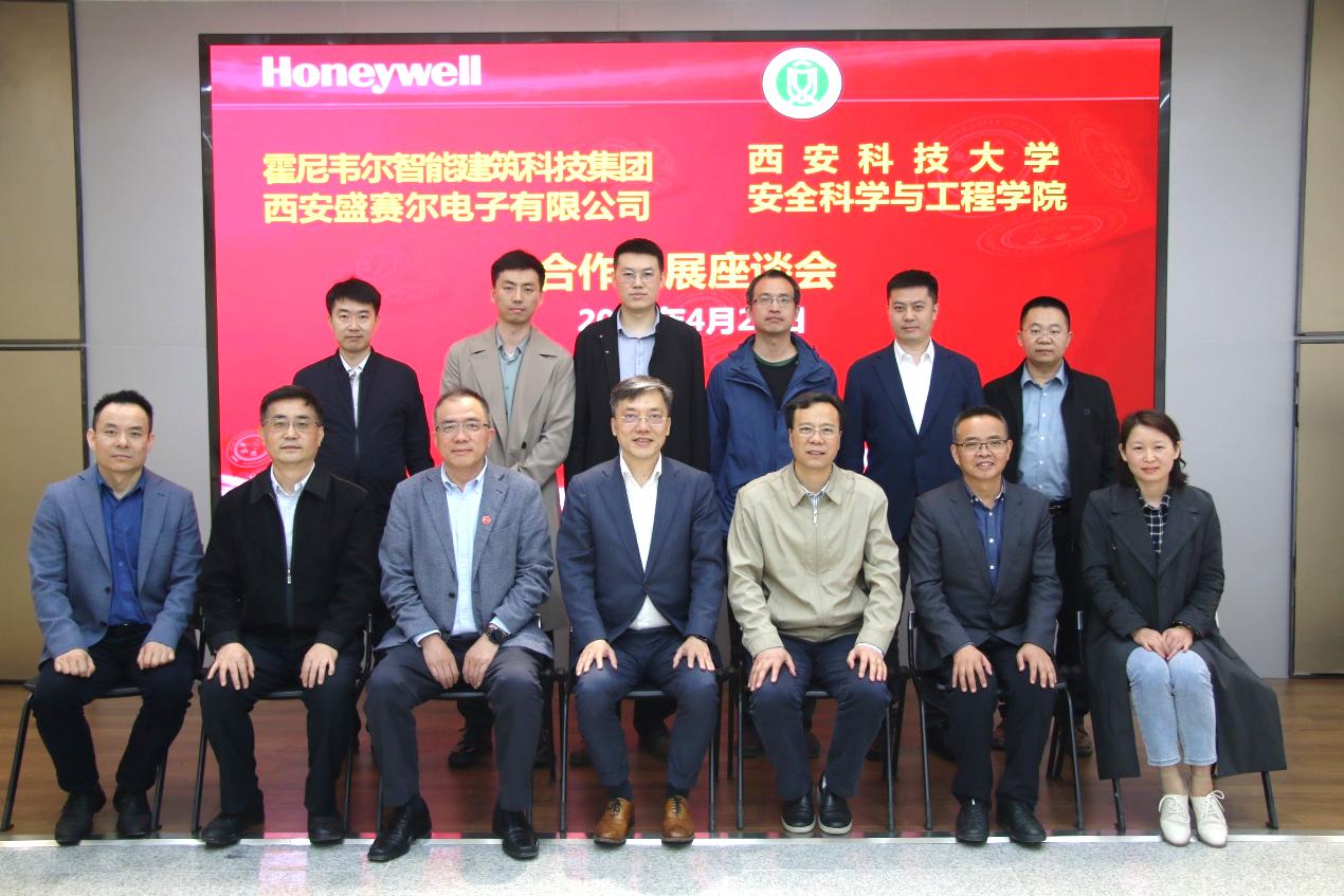 4月21日下午,霍尼韦尔智能建筑科技集团全球副总裁兼中国总经理李烨、霍尼韦尔(西安)有限公司及西安盛赛尔电子有限公司总经理何军、西安盛赛尔电子有限公司市场总监金克、研发总监曾意忠、销售总监张博一行莅临体育365官网访问交流。公司副董事长王贵荣、公司党委书记杜勇、副经理罗振敏、曹鸿,消防救援系副主任白磊、院科研平台中心主任程方明、消防救援系教师王伟峰、刘长春等参加座谈交流。