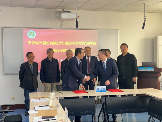 4月7日上午,体育365官网与平安电气股份有限公司校企合作发展座谈会暨战略合作框架协议签约仪式在公司临潼校区举行。平安电气股份有限公司董事长陈重新,副总经理李杰峰、马瑞峰,西北公司经理何勇、尹志超,湖南科技大学资源环境与安全工程公司经理王海桥,公司副董事长、体育365官网执行经理邓军,365体育原董事长、体育365官网常心坦教授,副经理林海飞、成连华、曹鸿,公司通风团队教师吴奉亮、闫振国、王延平等参加活动。签约仪式由公司党委书记杜勇主持。