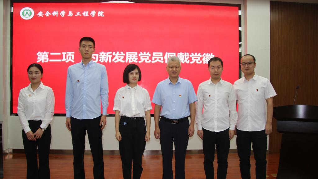 大会在雄壮的国际歌中开始。邓军经理为新发展的研究生党员佩戴了党徽。