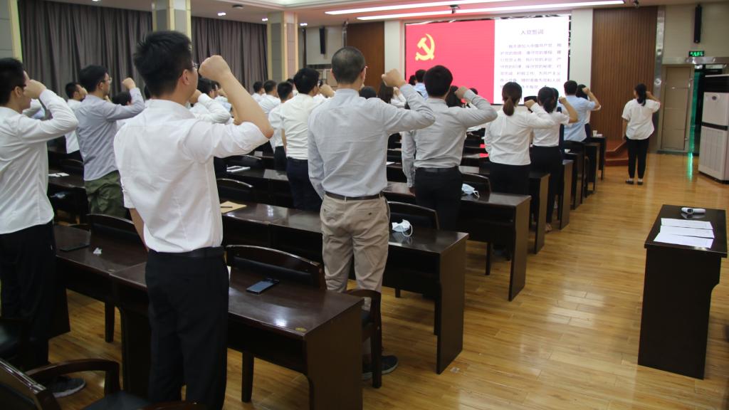罗振敏副经理带领与会全体党员面对鲜艳的党旗,举起右拳,庄严宣誓。坚定有力的誓言,使每一位与会党员再一次接受了深刻的党性教育和灵魂洗礼。