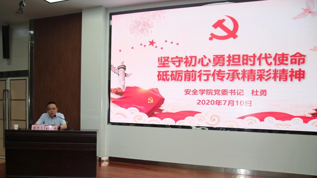杜勇做了题为“坚守初心勇担时代使命 砥砺前行传承精彩精神”的精彩党课,他从“不忘初心、牢记使命跟党走”和“勇立潮头,争当时代弄潮儿”两个方面,要求全体党员永远铭记入党誓词,坚守初心使命,树牢“四个意识”,坚定“四个自信”,做到“两个维护”。他希望全体毕业生党员在离校前协助做好公司毕业生离校工作;离校时认真做好党组织关系转接;离校后,加强党的理论学习,志存高远、脚踏实地,不畏艰难险阻,勇担时代使命,把个人的理想追求融入党和国家事业之中,在新的学习和工作岗位上永葆热情,更加奋发进取,牢记“祖国利益高于一切”的校训,秉承“励志图存、志强不息”的胡杨精神,以已故老经理徐精彩为榜样,做好“精彩精神”的践行者和传承者。