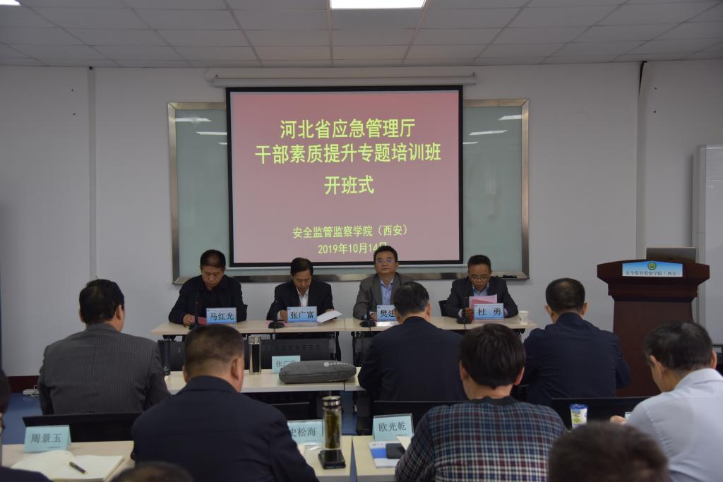 10月14日上午,河北省应急管理厅干部素质提升专题培训班在365体育临潼校区骊山校园开班。河北省应急管理厅副厅长张广富,365体育党委副书记樊建武,河北省应急管理厅人事培训处处长马红光,安全监管监察公司(西安)党委书记杜勇,以及来自河北省应急管理厅和雄安新区的48名学员参加了开班式,开班式由杜勇主持。