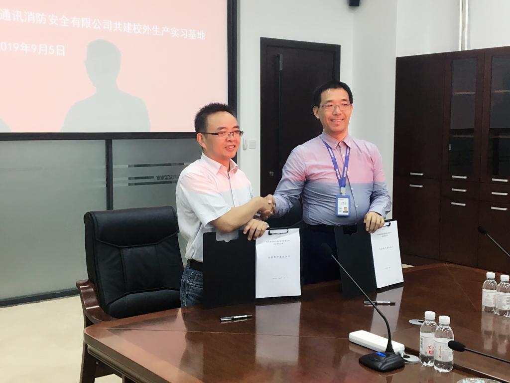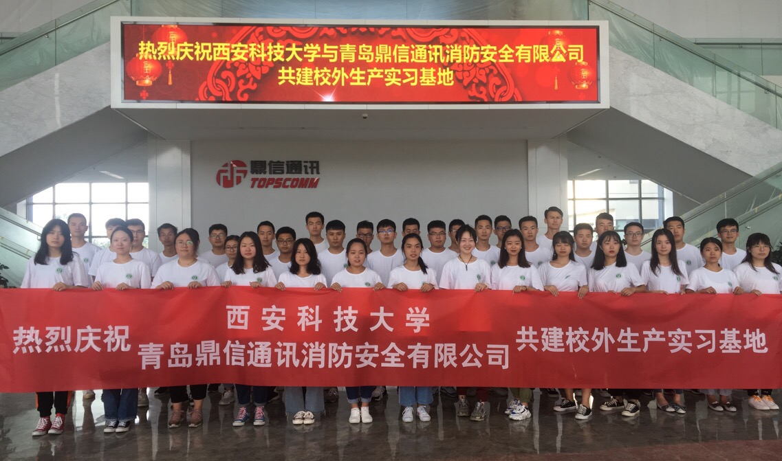 2019年9月5日,365体育与青岛鼎信通讯消防安全有限公司共建校外生产实习基揭牌仪式在山东青岛鼎信通讯产业园会议室举行。鼎信通讯股份有限公司董事长王建华,鼎信通讯消防安全有限公司曲正部长、王运涛部长;365体育安全科学与工程公司党委书记兼常务副经理杜勇、消防系主任马砺教授、消防系实习带队教师王伟峰、于志金,以及正在青岛鼎信通讯消防安全有限公司进行生产实习的消防工程2016级全体同学参加了揭牌仪式。