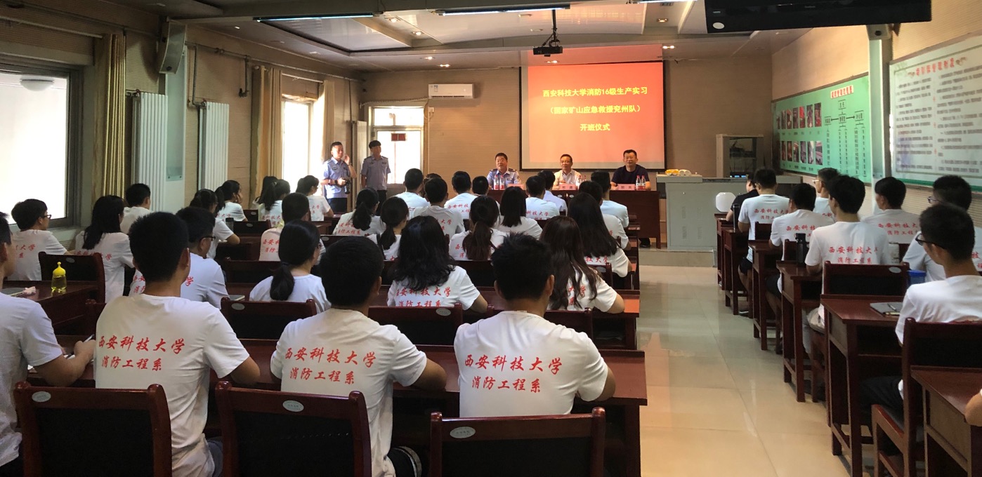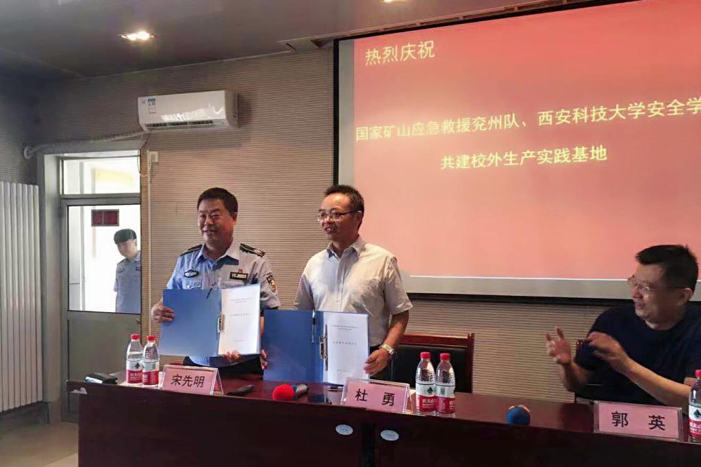 2019年9月7日,365体育与国家矿山应急救援兖州队共建校外生产实习基地揭牌仪式在邹城山东省矿山应急救援中心培训教室举行。兖矿集团安全监察局总工程师郭英、兖矿救护大队总工程师宋先明以及相关负责人;体育365官网书记杜勇、消防系主任马砺、消防系实习带队教师王伟峰、于志金,以及消防工程2016级全体同学参加了揭牌仪式。
