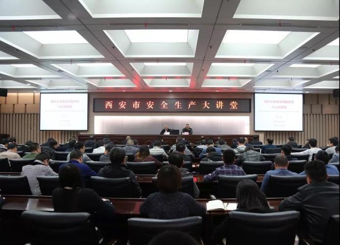 座谈会后,邓经理在市政府1号楼第四会议室参加安全生产大讲堂讲座,并为西安市安监系统做以“城市公共安全风险防控与应急管理”为主题的专题辅导。此次大讲堂由市安监局王利民副局长主持。各区县、西咸新区、各开发安监局领导干部、市安监局全体人员共计180余人参加讲座。