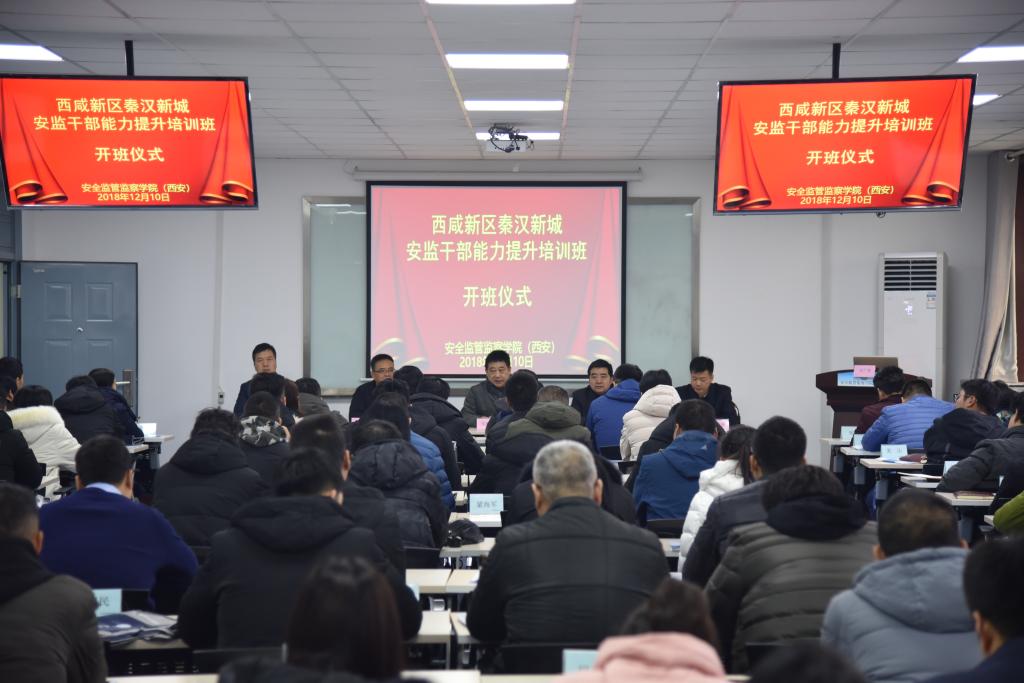 12月10日上午,西咸新区秦汉新城安监干部能力提升培训班在365体育临潼校区骊山校园开班。西咸新区安委办主任、安监局局长马忠平,秦汉新城安委办主任、安监局局长冯荣军,安监局副局长陈继珍,秦汉新城开发建设集团副总经理郭社库,安全监管监察公司(西安)党委书记杜勇,及来自秦汉新城安委会各成员单位的80余名学员参加了开班仪式。开班仪式由秦汉新城安监局副局长陈继珍主持。