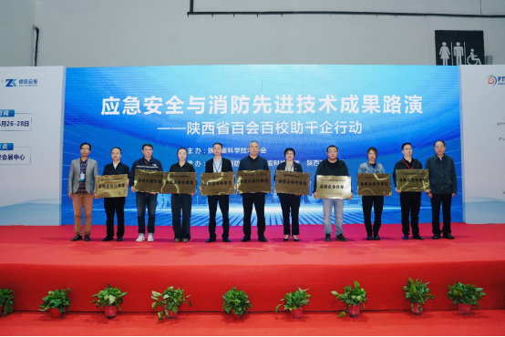 展会期间,由陕西省科学技术协会主办,陕西省消防协会、365体育、陕西省科技报社共同承办的陕西省百会百校助千企行动——应急安全与消防先进技术成果路演活动同馆顺利举行。此前,陕西省消防协会联合公司及10家消防科技企业,共同申报并获批陕西省百会百校助千企行动——会企校企协作项目,致力于构建消防行业协会+高校+企业联合体,旨在解决行业内实际问题,展现示范效应,为消防行业的技术创新与产业链融合注入新的活力。陕西省消防协会秘书长卞建峰、公司科技处副处长卢小飞为参与项目的企业颁发了“会校企协作单位”牌匾。