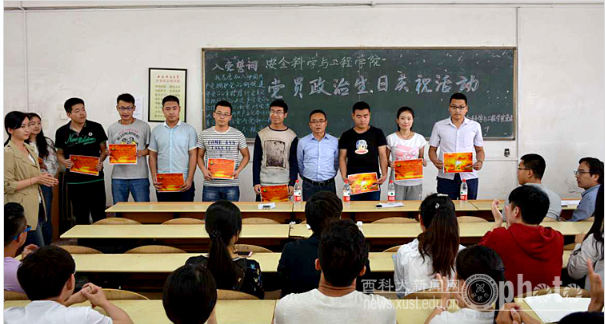 5月19日中午,公司党委在临潼校区3212教室举行党员政治生日庆祝活动。公司党委书记杜勇,全体员工党支部书记、本科生党员、高级党校学员150余人参加了活动。