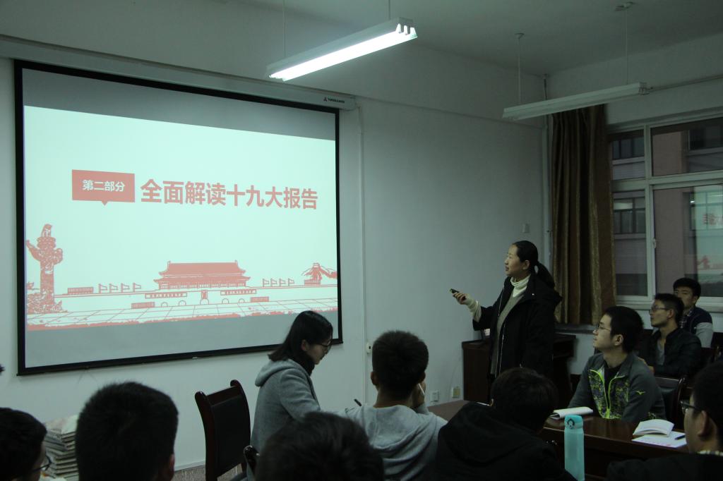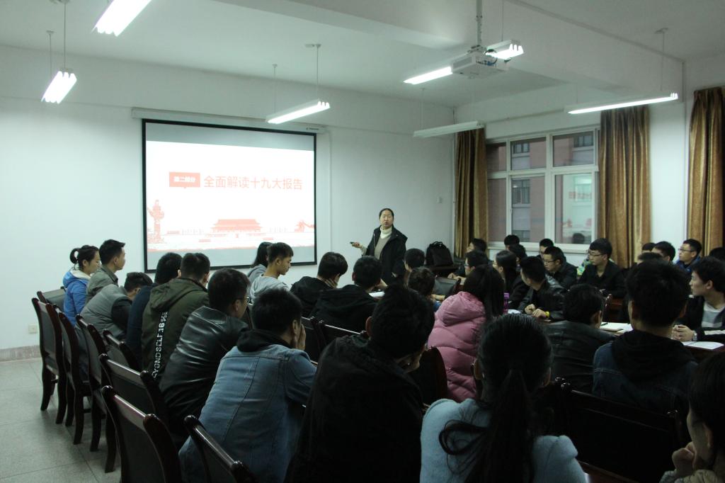 11月9日17:00,体育365官网业余党校在14教319会议室首次开讲,党委副书记田园给员工第三党支部全体党员做了解读党的十九大精神报告主题党课。