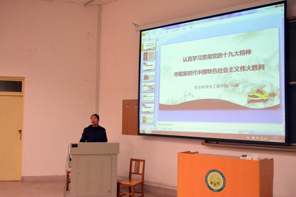 田园以播放人民日报发布的《中国很赞》视频为开端,呼吁同学们积极关心关注党和国家政事。并全方位、多角度针对党的十九大报告产生背景、习近平新时代中国特色社会主义思想的主要论断进行了深刻阐释,结合亲身经历和丰富的时政热点新闻,鲜明展示了过去5年的历史性成就和变革,带领全体同学感受到祖国的强大和民族的昌盛,同学们受益良多。并要求同学们认真学习和领悟党的十九大的精神实质和丰富内涵,并作为自己学习和工作的行动纲领,不忘初心、牢记使命,为实现中华民族伟大复兴的中国梦而努力奋斗。
