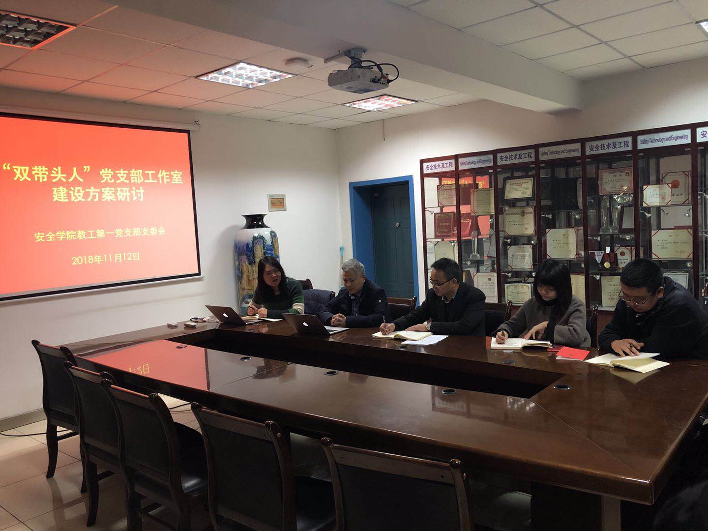 11月12日下午,体育365官网教工第一党支部组织召开“双带头人”党支部工作室建设方案研讨会,支部书记邓军、支部副书记王莉、支部委员李磊、严敏参加了本次会议,会议由公司党委书记兼常务副经理杜勇主持。