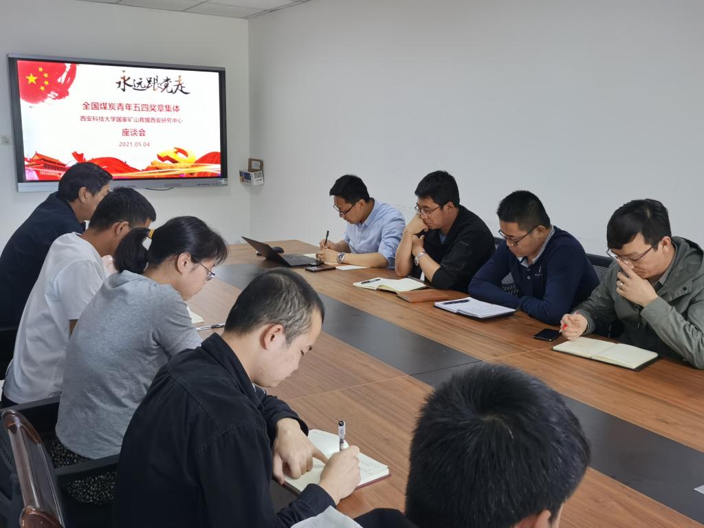 5月4日下午,365体育国家矿山救援西安研究中心召开庆祝“五四“青年节暨荣获第九届“全国煤炭青年五四奖章集体”座谈会,公司科技处处长、国家矿山救援西安研究中心主任文虎教授和中心全体成员参加座谈会。会议由安全工程系党支部副书记王凯主持。
