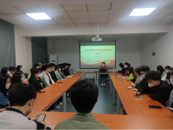 3月10日上午,2021级硕士研究生党支部在雁塔校区北院学科楼205室召开党员大会。全体党员参加会议,党支部书记胡丽红主持会议。