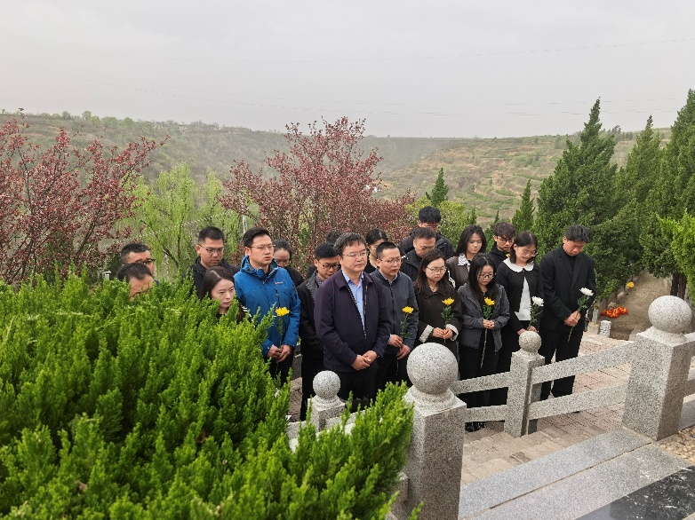 白鹿原公墓内松柏苍翠、庄严肃穆,徐精彩教授墓园静谧肃穆,承载着后人对这位行业先驱的无尽敬仰与深切怀念。活动伊始,全体党员同志身着素净服装,在墓园前整齐列队,神情庄重肃穆,全场肃立静默,向为国家煤矿安全事业鞠躬尽瘁、奉献一生的徐精彩教授默哀三分钟。低沉肃穆的氛围中,每一位党员都心怀崇敬,深切缅怀徐精彩教授为我国消防工程、煤矿安全领域发展作出的卓越贡献,追思他爱岗敬业、无私奉献的崇高品格。