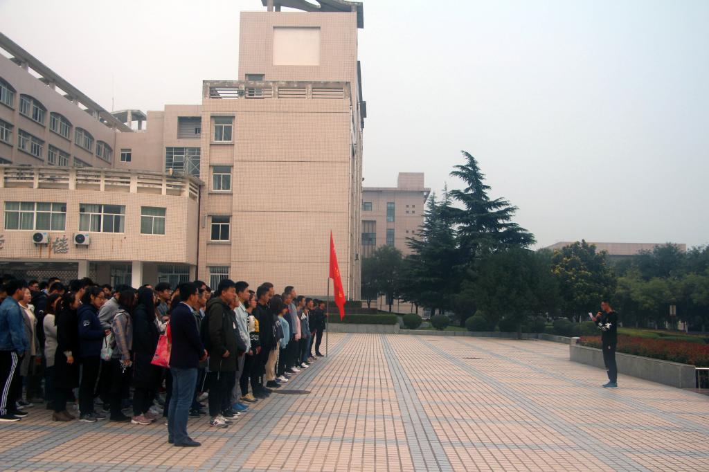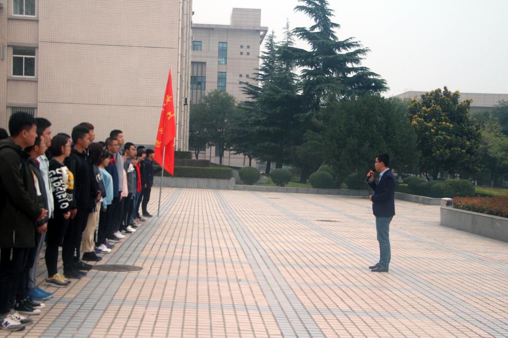 2018年10月15日公司在明德广场举行“时代的责任赋予青年、时代的光荣属于青年”主题升旗仪式。2015级辅导员袁刚、员工第一、第二党支部全体党员、体育365官网团委员工会主要员工干部、18级全体新生参加。