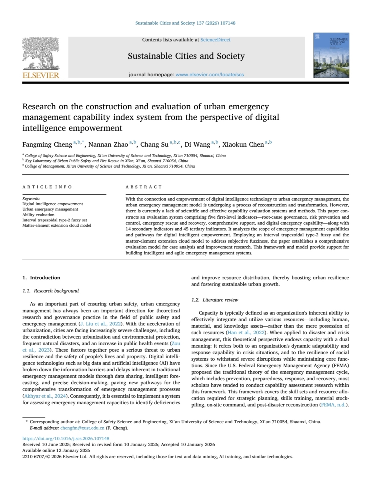 时间:2026-01-28 阅读量:近日,体育365官网城市安全与智慧应急研究所程方明教授课题组在城市可持续发展领域顶级期刊《SustainableCitiesandSociety》(中科院一区TOP期刊,影响因子12.0),发表了题为“Research on the construction...